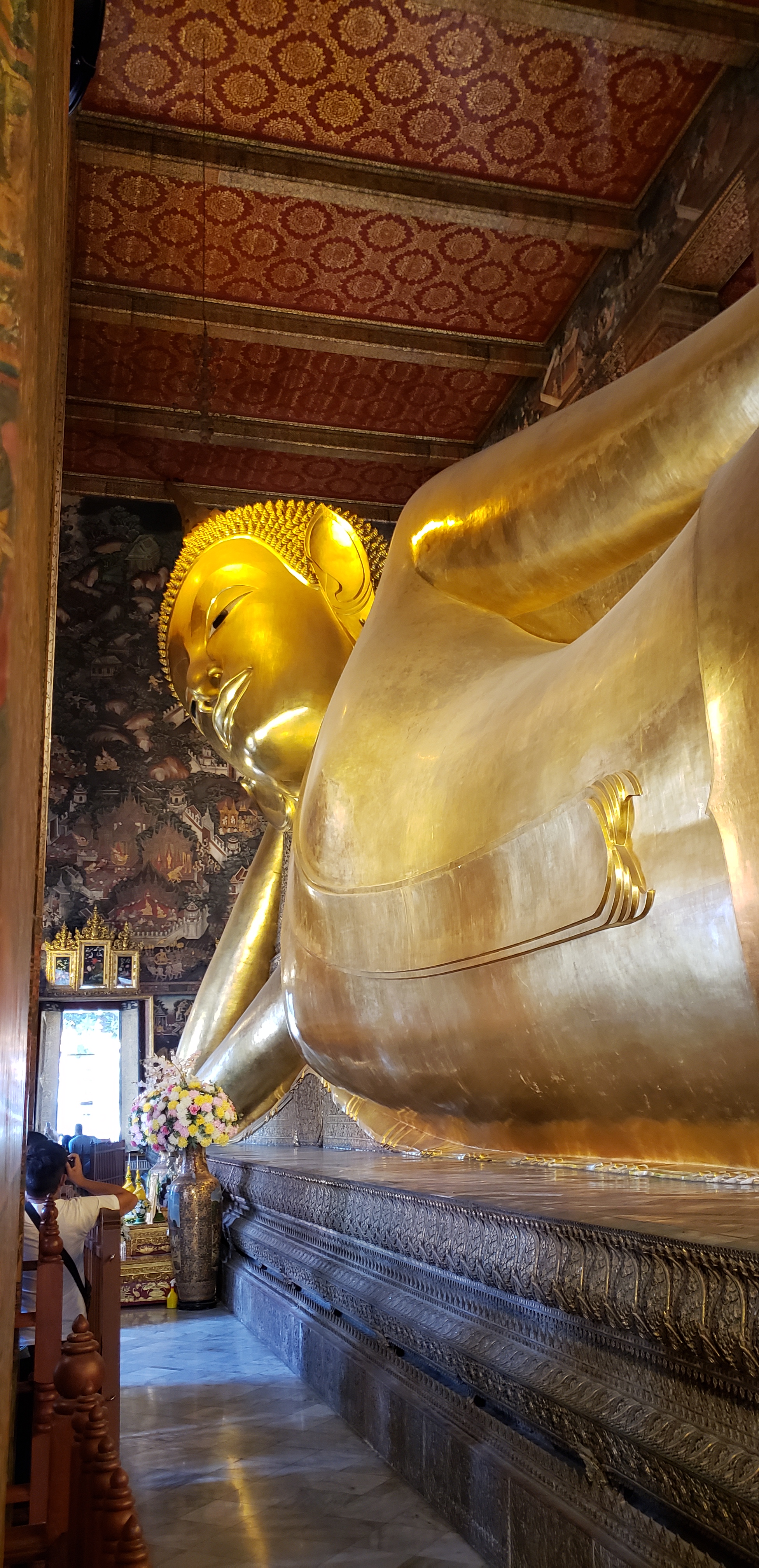 One of my favorite places to visit in Bangkok is the Reclining Buddha. Buddha here is larger than life, and the building he is in is small which makes him look even bigger. It’s almost impossible to take him all in, which is part of the fun.