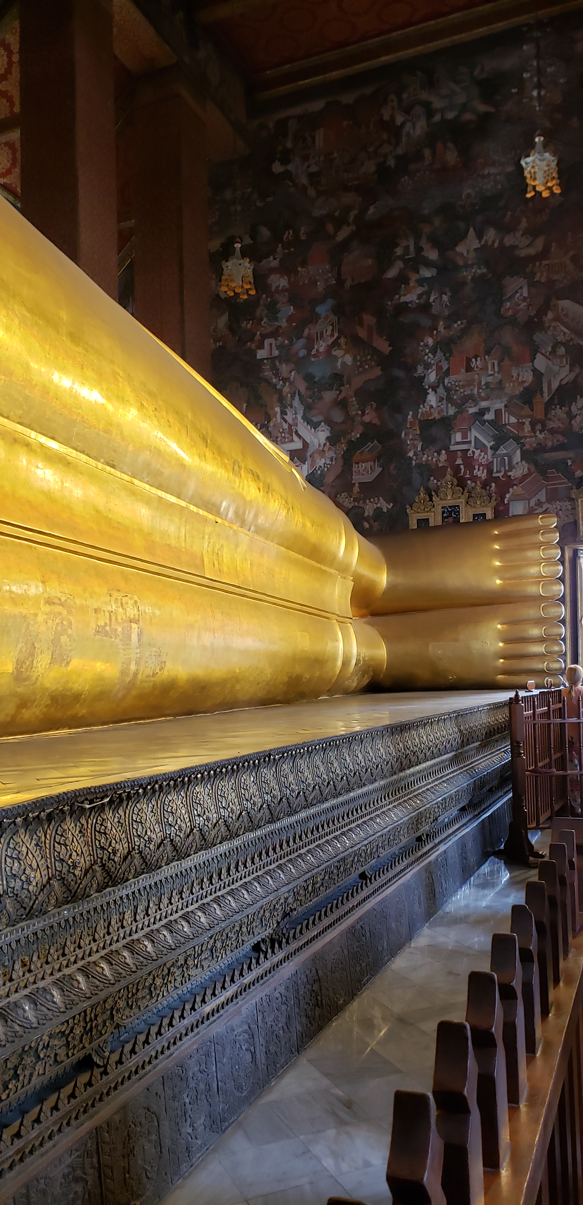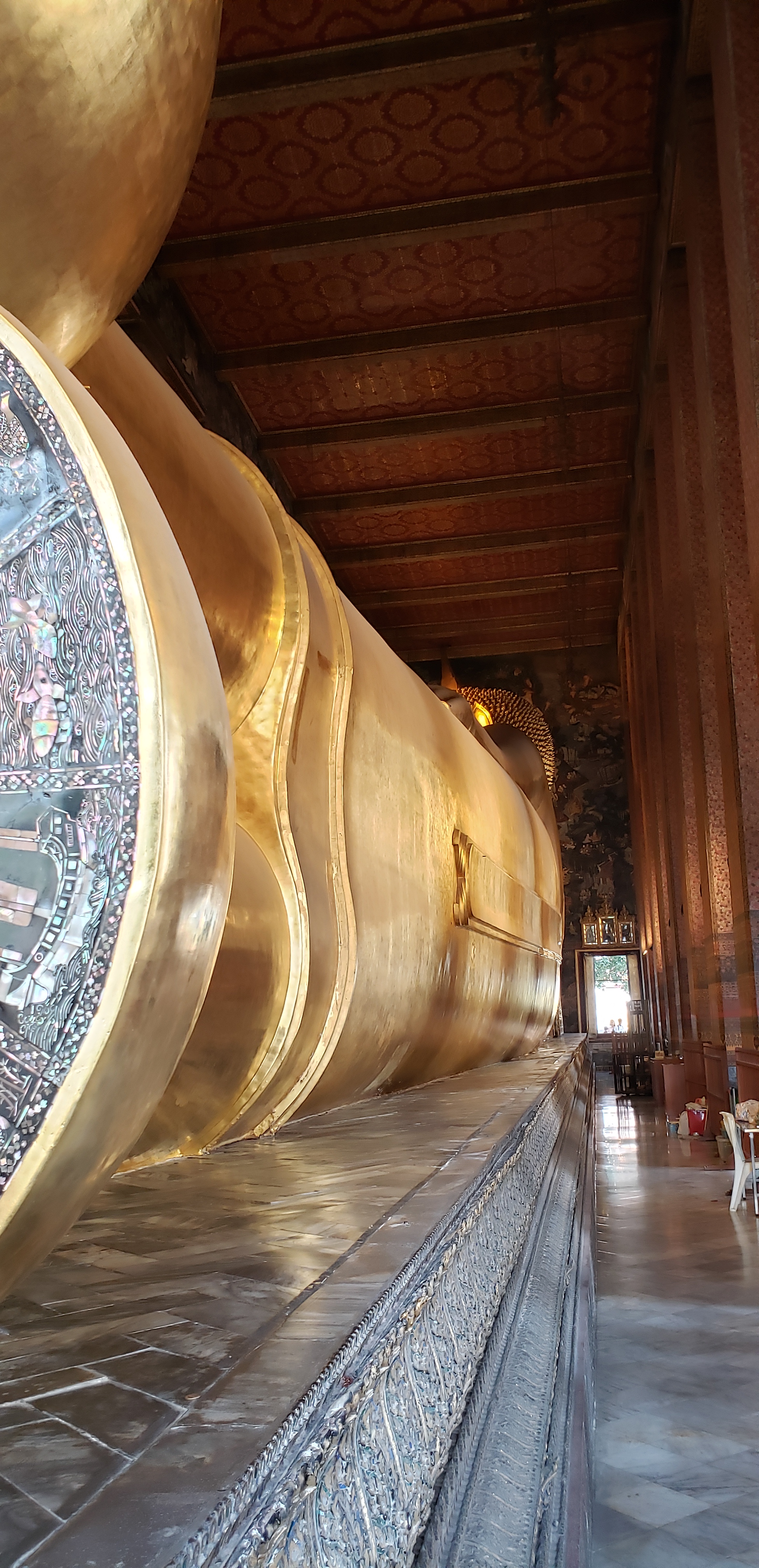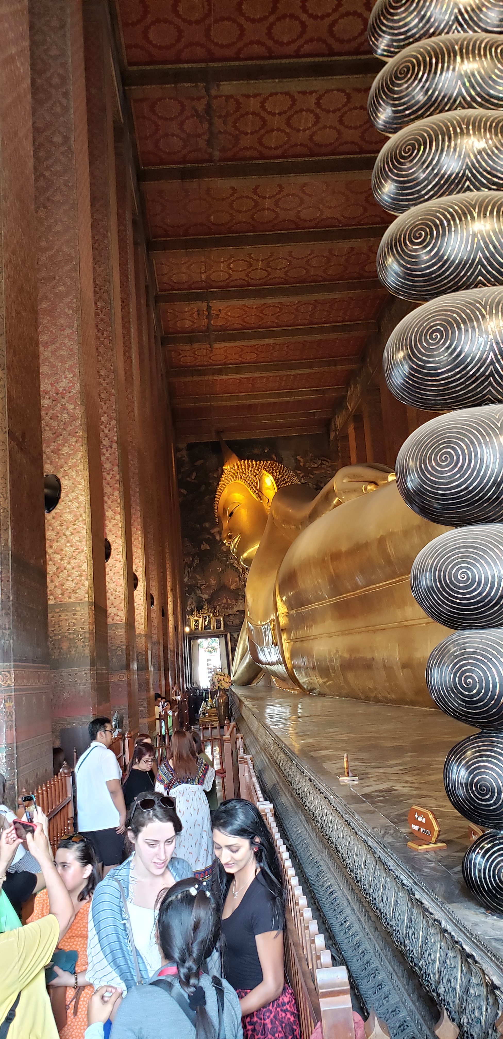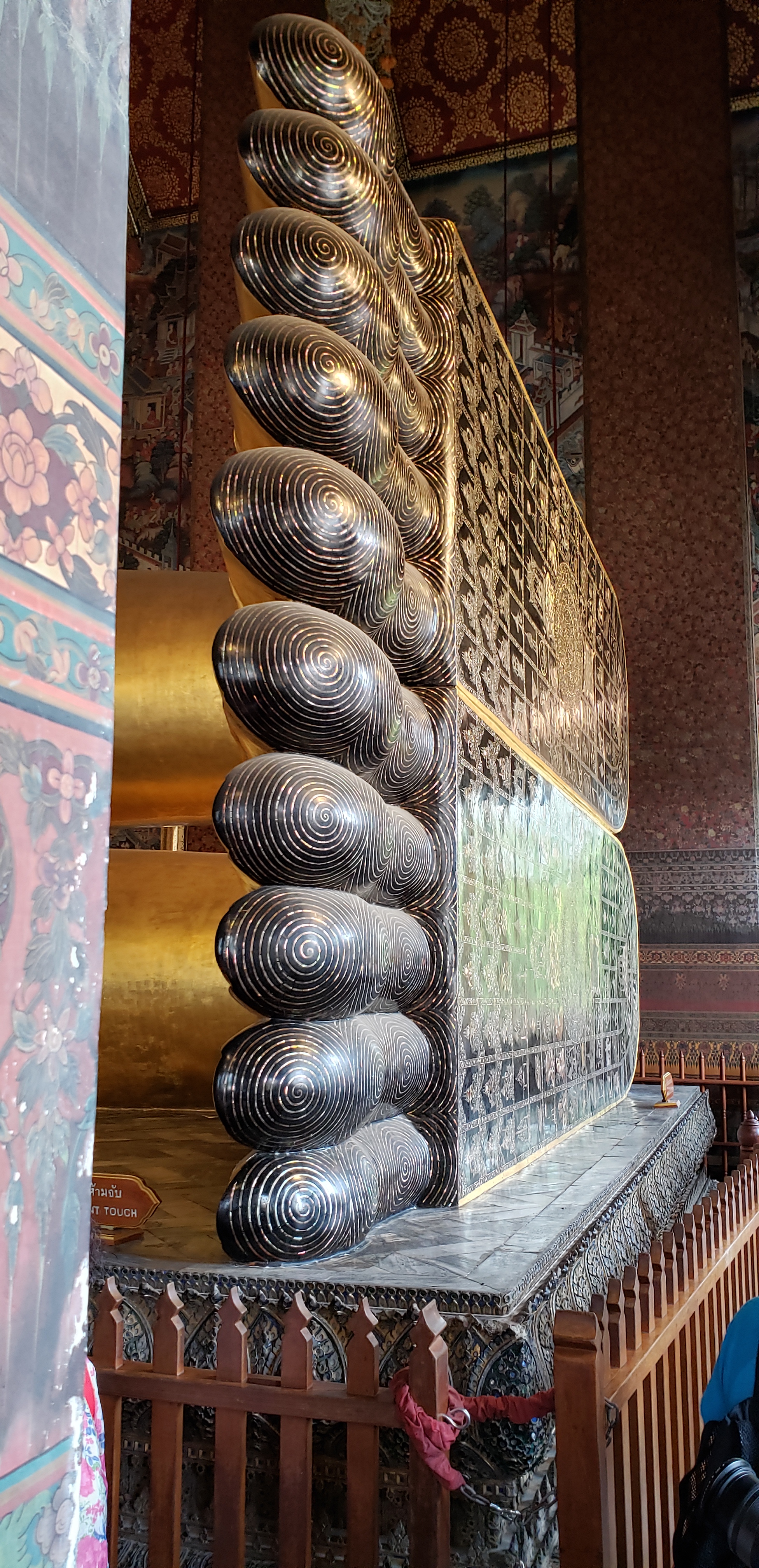 One of my favorite parts of the visit are Buddha’s feet. In Thai culture, the feet are considered unclean (so don’t go pointing your feet at anyone). But in this spiritual house, Buddha’s feet are quite ornate and decorated. I could look at them all day, and I don’t like feet either…although now maybe I am self-diagnosing myself as having a reclining buddha foot fetish.